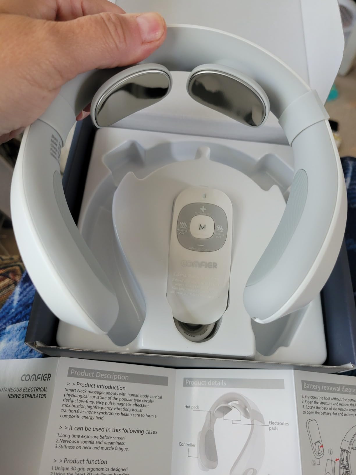 The device uses a combination of gentle electrical pulses, heat therapy, and ergonomic design to simulate real massage techniques. It helps relax tense muscles, improve blood circulation, and relieve neck stiffness. You can adjust the intensity and warmth levels to match your comfort. Regular use promotes relaxation and reduces daily stress.
